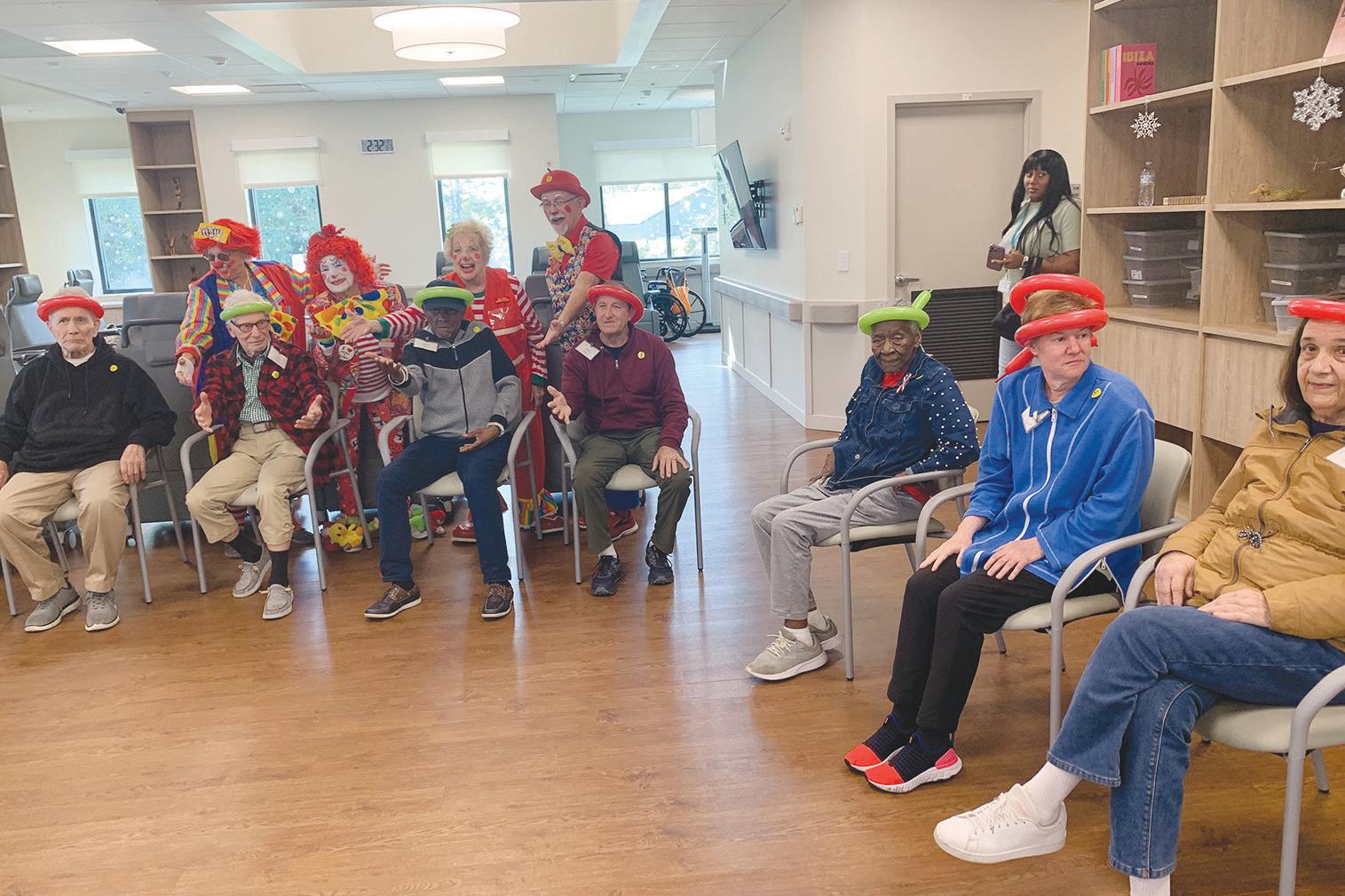 and maintain the spin on one finger and were cheered on by those watching. We sang several songs and then made balloon hats for all. The staff told us we were wonderful and to please come back, and we will. There is a different kind of pleasure and satisfaction clowning brings when entertaining seniors with memory problems and eliciting so many positive responses.