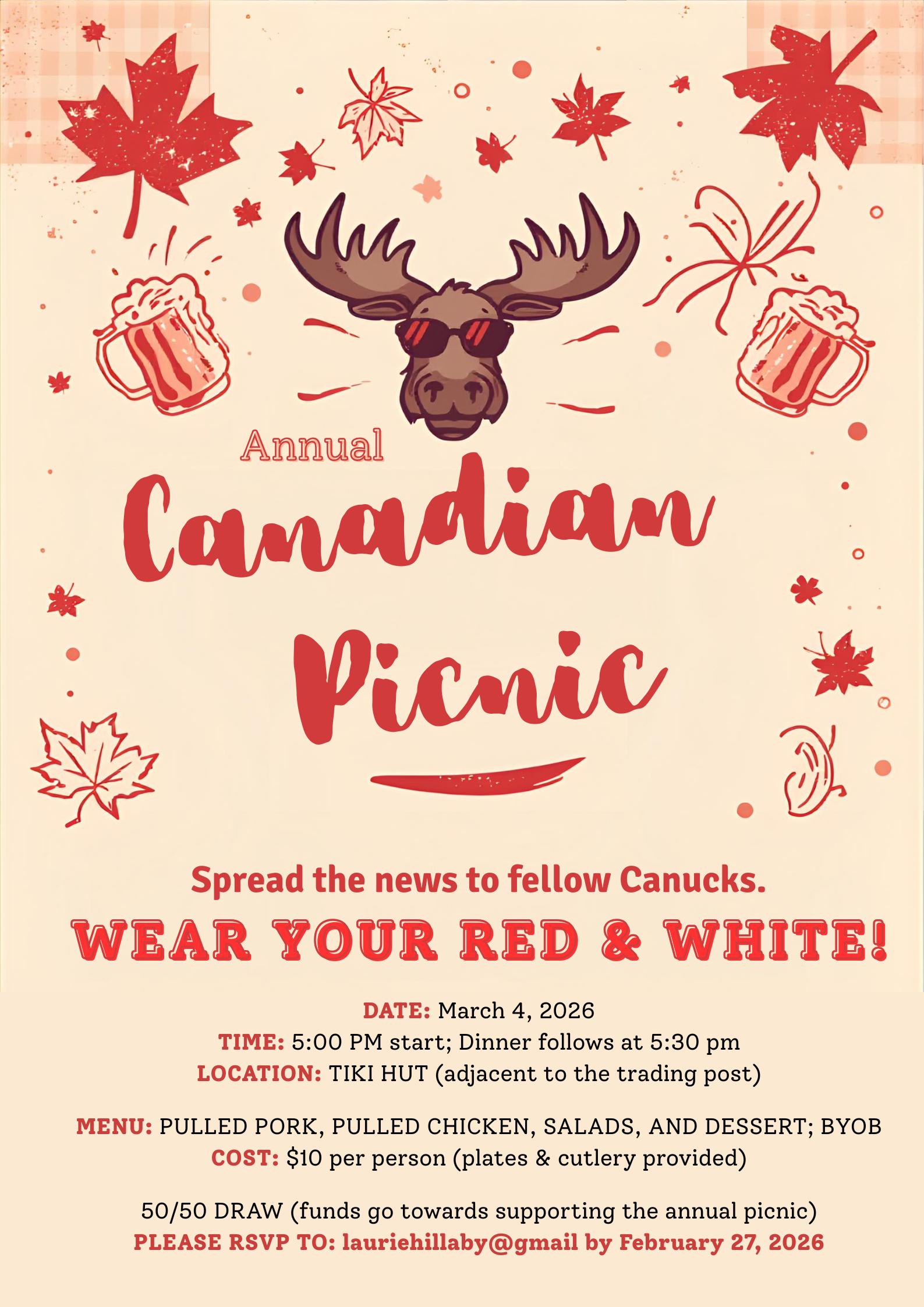 Tuesday, February 24, 2026, at 10 a.m. in the Tiki Hut.