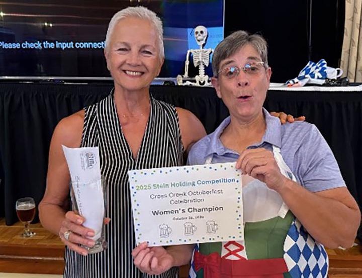 THE MEN’S STEINHOLDING CHAMPION WAS DAVID MESIMER. HE RECEIVED A BEER GLASS AND A GIFT CERTIFICATE FOR THE CROSS CREEK RESTAURANT! CONGRATULATIONS DAVID!