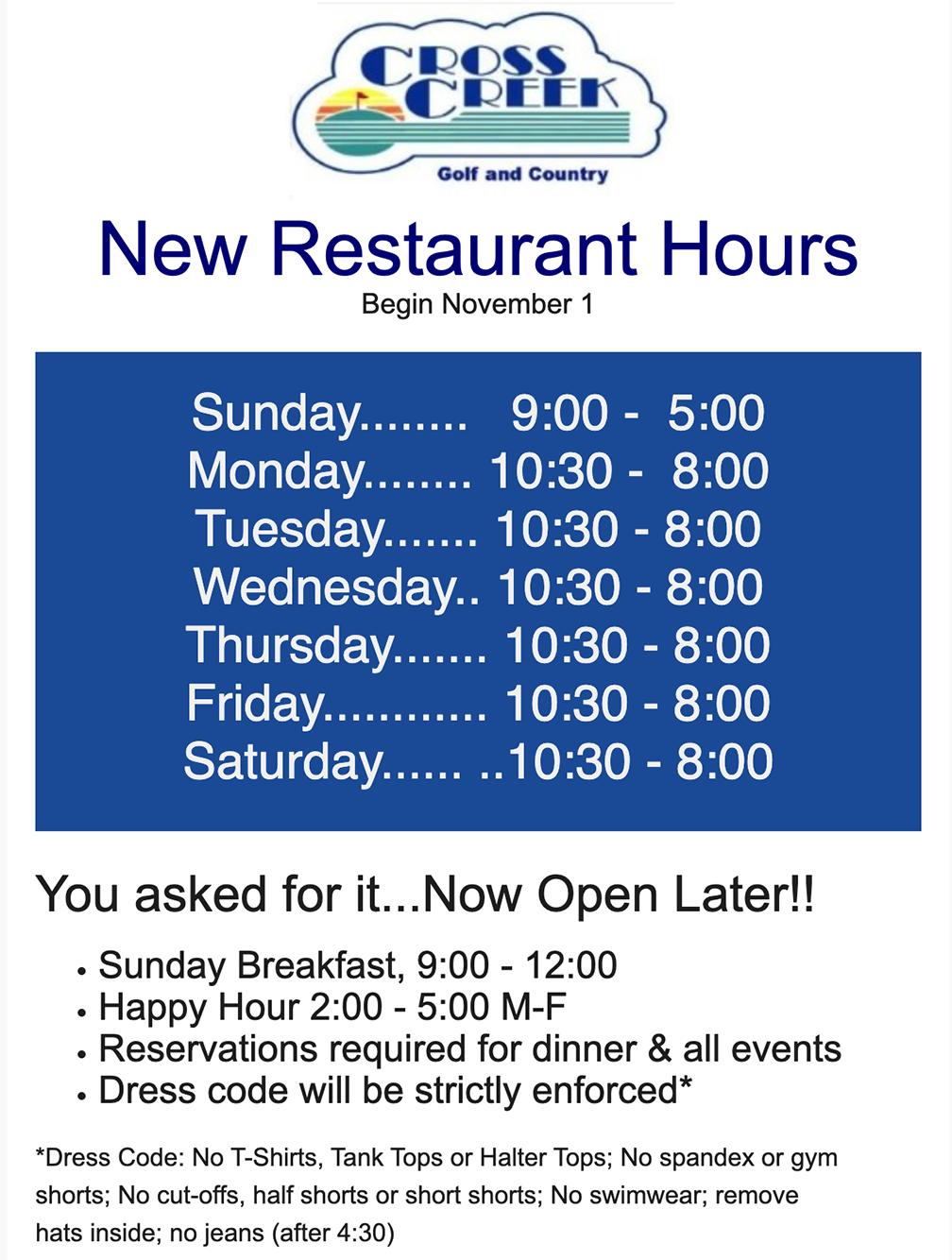 Members can now e-mail their request to the following departments: office@crosscreekfl.com restaurant@crosscreekfl.com proshop@crosscreekfl.com clubhouse@crosscreekfl.com