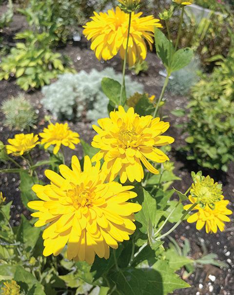 center and the variety “Hortensia” or “Goldquelle” looks like a double yellow pom-pom. Grow R. laciniata in rich, well-drained soil – these native plants would naturally be found in wetland areas in partial shade.