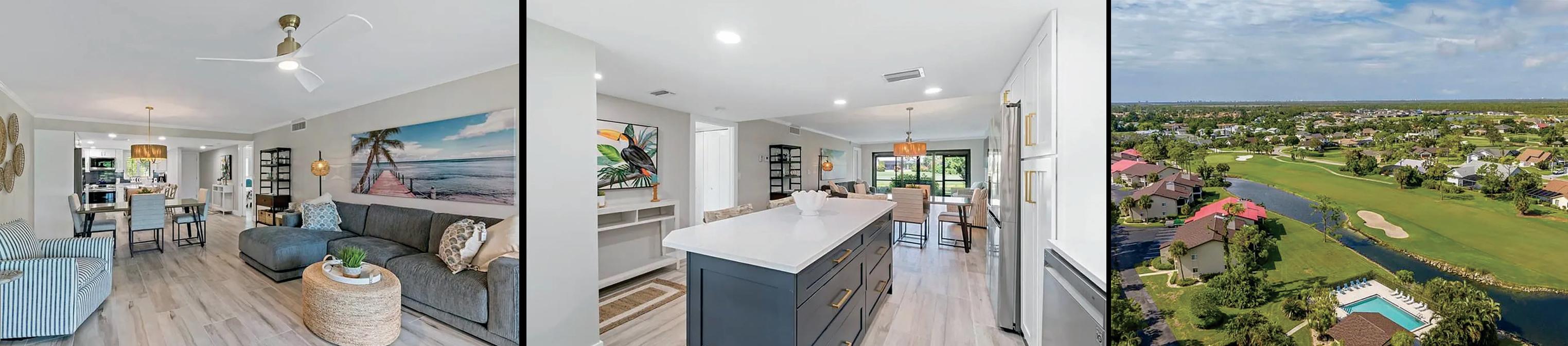 1758#liv/2046#total, Amazing 1st fl. w/stunning golf course views. Designer inspired, all new & turnkey furnished! New: cabinets, quartz counters, appliances, tile floors, lighting, faucets, fixtures, fans A/C. $399,000