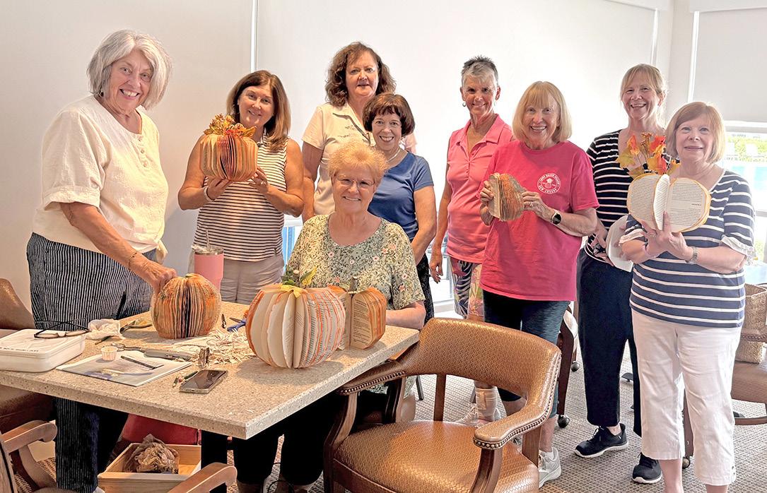 The club’s Artisans Group showed off their creativity this week, transforming old books into festive pumpkin decorations. By cutting and shaping the