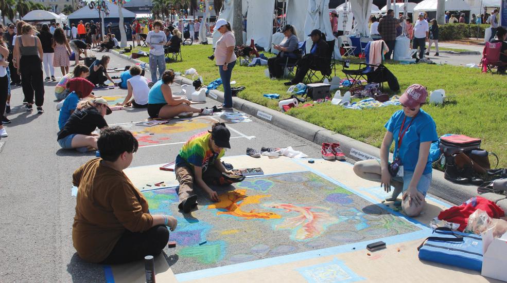 Embracing a tradition rooted in 16th century Italy, 40 teams of Lee County high school students unleash their creativity on the pavement using chalk pastels. Within 7.5 hours at ArtFest Fort Myers, students craft impressive 6-foot square artworks, all inspired by the overarching theme of “The Joy is in the Journey.”