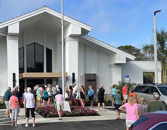 MEMBERS GATHERING AT THE ENTRANCE AT 9 A.M. ON FRIDAY, FEBRUARY 27.