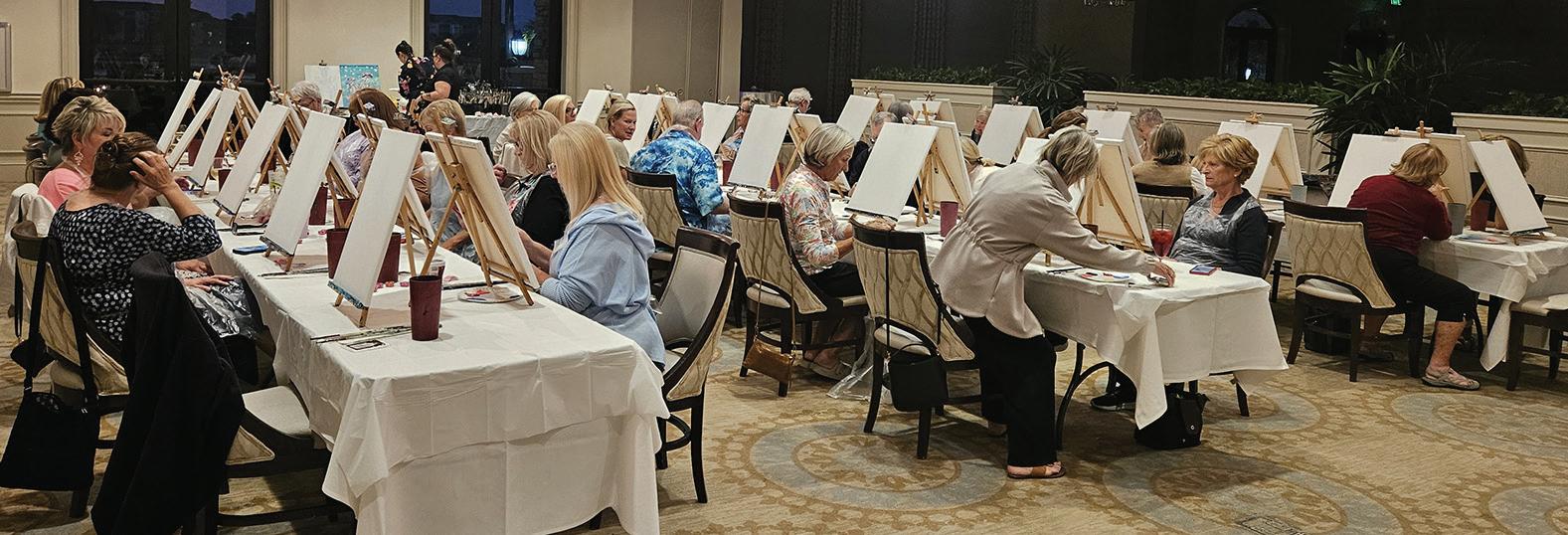 Members gathered in the Palms Dining Room on February 11 for a lively evening of creativity at our Vino’s Picasso Paint & Sip event.
