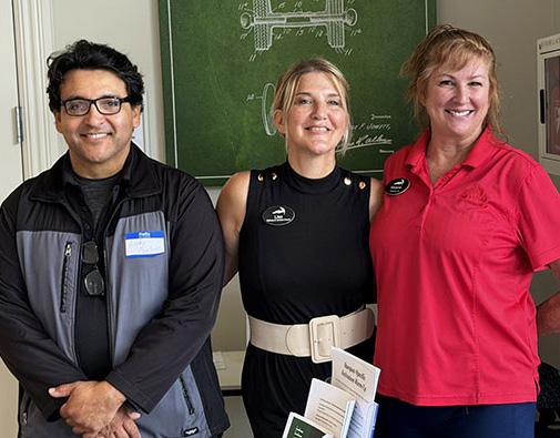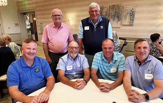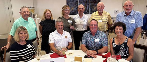 ATTENDING GOLF COMMITTEE MEMBERS. STANDING (L-R): MIKE HORNING, JUDY KENT, LORI SWANELL, STU DRAPER (CHAIR), MIKE WHITTEN, AND RICH FIREBAUGH (BOARD LIAISON). SEATED (L-R): BETTY RUPPEL, PETE DESJARDINS, JASON SKYBERG, AND DIANE GERMANI.