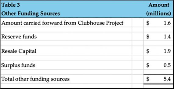 If total project costs are $24.2 million and the special assessments generate $20.8 million, doesn’t that leave a shortfall? Yes, it does. However, the Club has additional sources of cash to bridge the gap. Those sources are outlined below. (No bake sales required.)