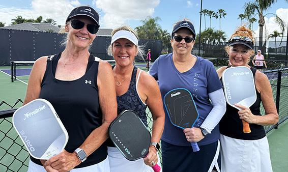 ATTENDING TENNIS & PICKLEBALL COMMITTEE MEMBERS. STANDING (L-R): LOU BOTTITTA, AND ANDI STERN (CO-CHAIR). SEATED (L-R): KIM SCHOCH, ANDREA HOULE (CO-CHAIR), AND STEVE JAMROSE.