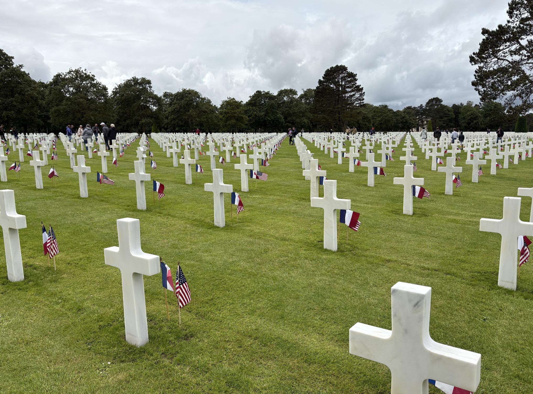 The Caen Memorial Museum was sobering, as was visiting the American Cemetery which honors American troops who perished in Europe during WWII. 9,387 white marble gravestones overlook Omaha Beach.
