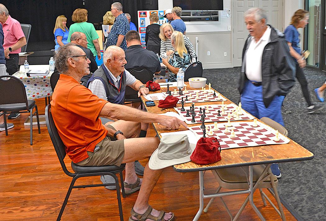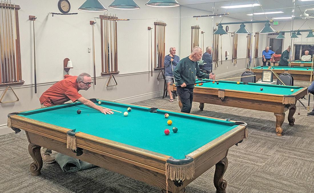 Individuals wishing to learn more about the Herons Glen 8-Ball team or the North Fort Myers Seniors 8-Ball League can contact Al Southerland (alsailor60@gmail.com) or go to the website: Seniors 8-ball League | NFM8-ball. Al Southerland and Paul Koenig are pictured below in action in the Herons Glen pool room during the match with Tamiami Village on January 6.