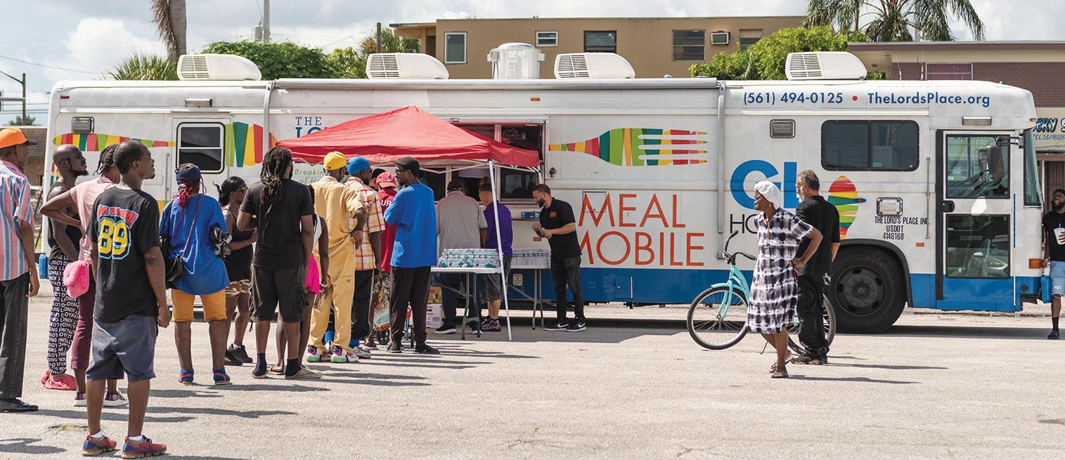 Individuals experiencing homelessness receiving hot meals from the Meal Mobile at its feeding site in Belle Glade (photo by Downtown Photo)
