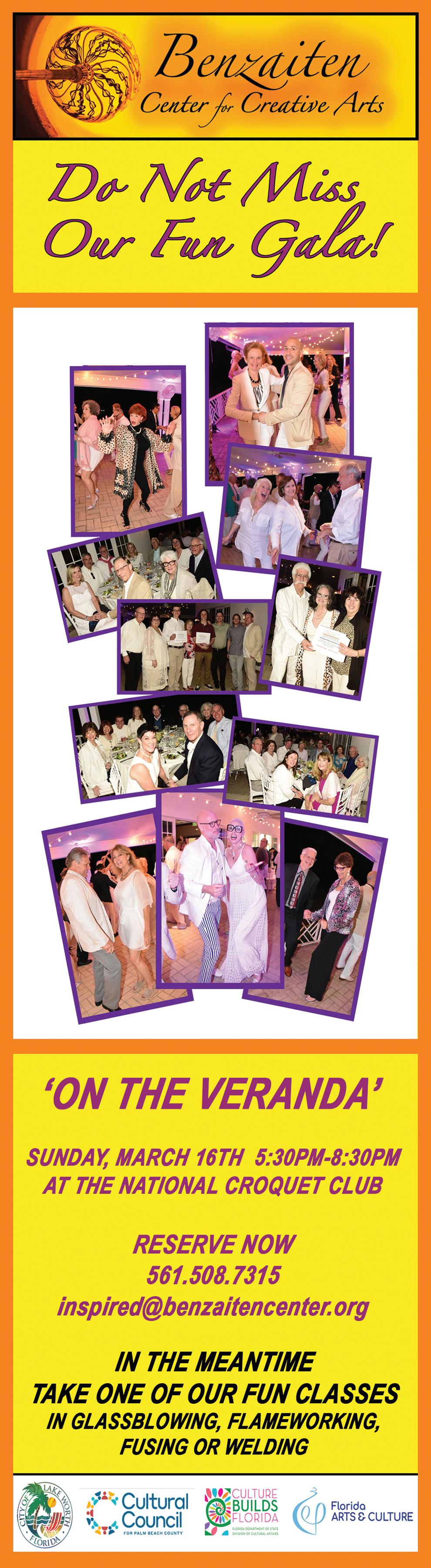 Held on the veranda of the National Croquet Club, overlooking its lush green lawns, it a great venue for Benzaitens’s annual gala. The men love it because it is a casual affair, and after dressing up all season this is a welcome reprieve. The silent auction is stellar due to the many talented glass artists who contribute to it each year. They are so thankful to have such a great glass art facility