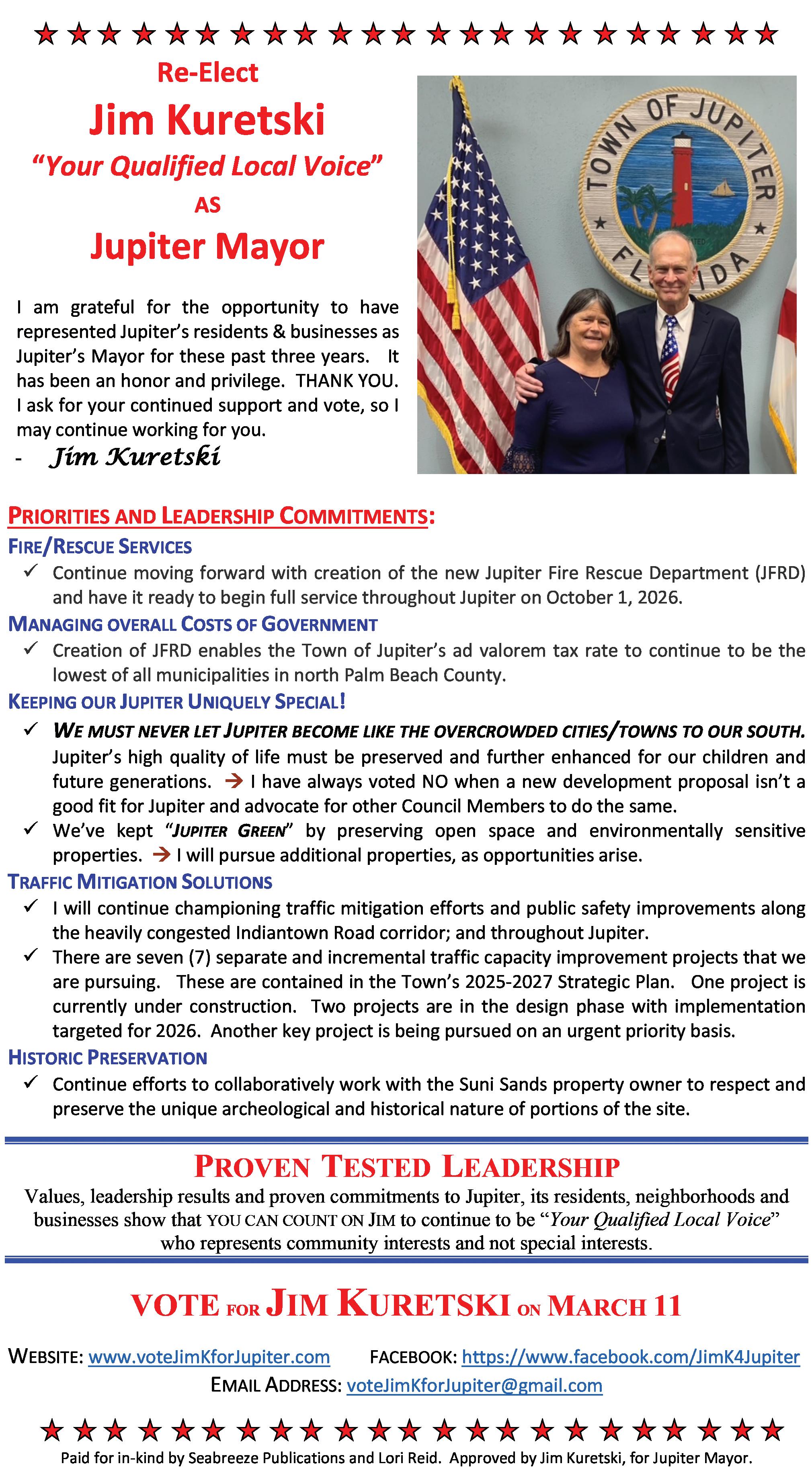 By Jim Kuretski, Mayor, Town of Jupiter