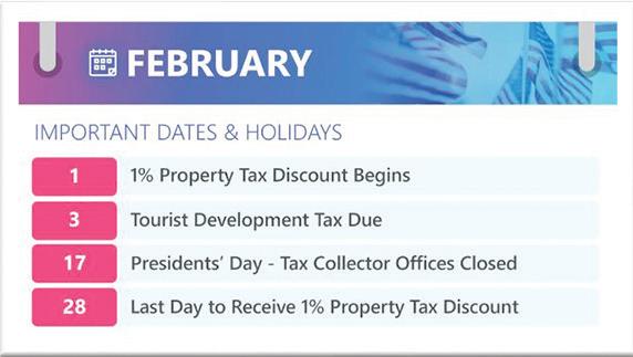 The deadline to file for a homestead exemption is March 3 this year. This is an excellent time of year to review your homestead exemption status and examine additional exemptions that may yield tax savings. In this month’s newsletter, you will find information to help you do just that. I hope you find it useful.