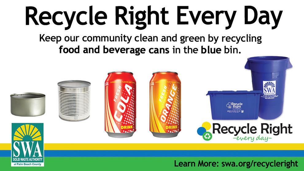 Today, many things are recyclable, but not everything. Palm Beach County’s dual-stream recycling program only accepts certain items for recycling. Food and beverage cans are two of them. They, along with pet food cans, go into the blue recycling bin.
