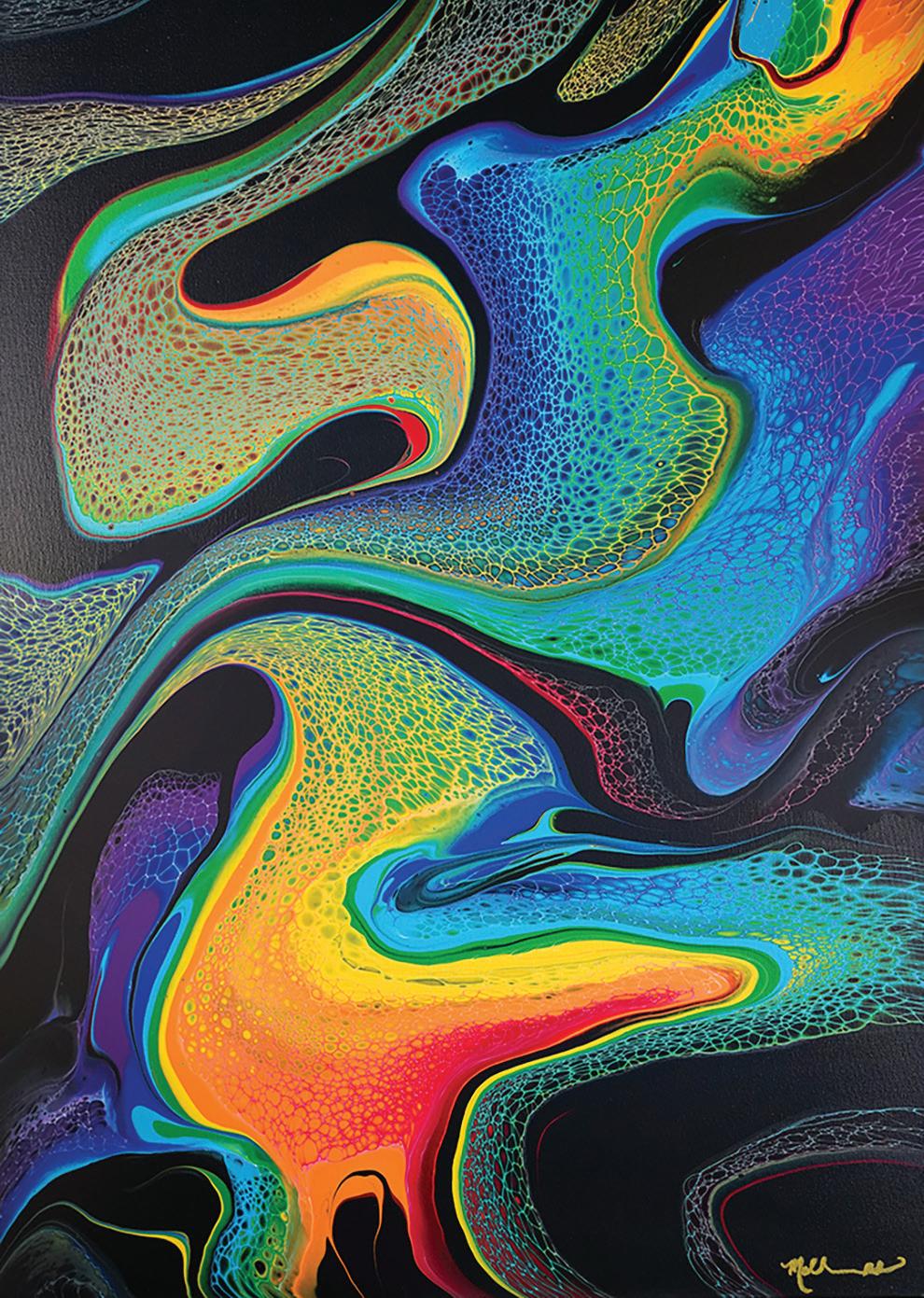 When the ArtiGras Fine Arts Festival announced its new commemorative poster artist, the spotlight fell on an artist whose vibrant spirit matches the electric movement of her paint: Molly Leach, South Florida’s beloved fluid abstract artist whose work has captivated millions across the world. Molly is a creator who lives and breathes abstract art. Fluid acrylics are her playground, her language, and her spark. On her wildly popular YouTube channel—bursting with millions of views—viewers gather for mesmerizing acrylic pours, swipe technique magic, and blow-dryer-driven Dutch pours that dance across the canvas. Her tutorials, experiments, and how-to videos
