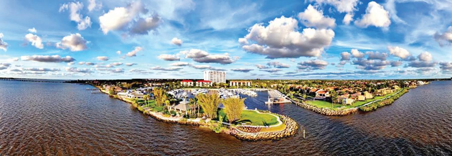 features avoidance-controlled flight and a comprehensive range of advanced functionalities. The drone’s camera settings were as follows: ISO 100, focal length 1.7 at 1/1250 of a second. He utilized a panoramic setting of 180 degrees to capture both the Cape Coral bridge on the left, and the south end of the Landings on the right.