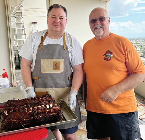 The largest contributed dish by far was the more than 41-pounds of barbecued ribs, 13 racks in all, donated by Ariel’s Board of Administrators president Chris Duca. Since this was the first time Chris had attempted to cook this volume of ribs, he asked another Board member, Steve Smith, to assist with timing and other issues. Steve has participated for many years in major BBQ competitions throughout the country so is a fully qualified helper. Steve reported the only thing he was required to do was verify that Chris didn’t need any help at all. The ribs earned rave reviews.