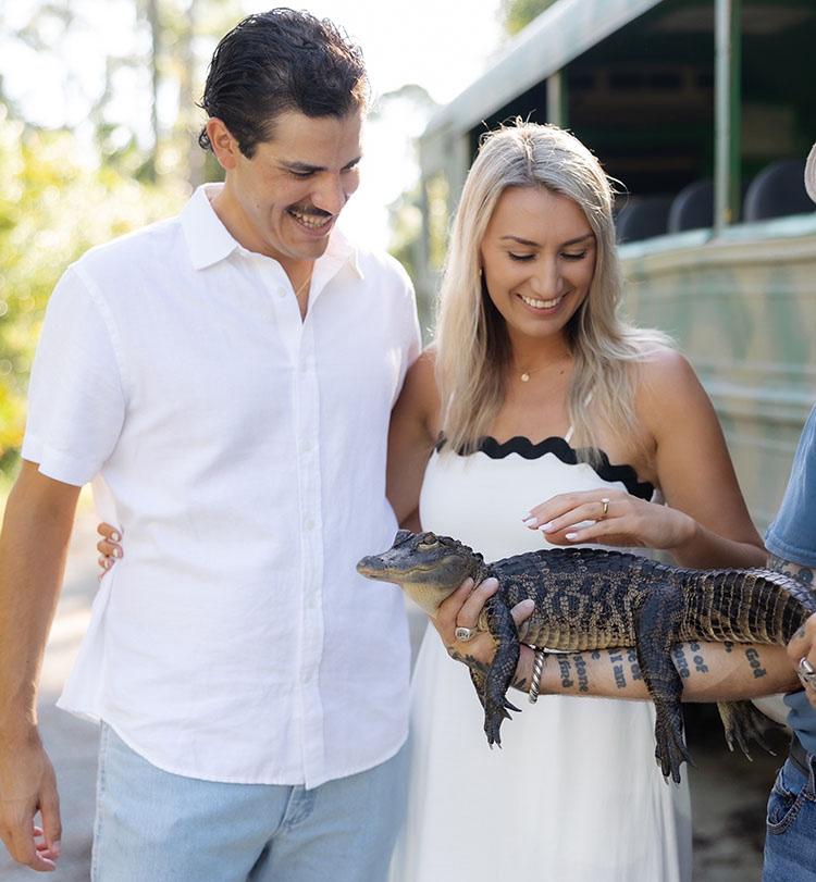 meet Carly’s family and experienced the winters in Lakefield, Ontario, as well as a few blizzards. Carly flew south to meet Ryan’s family in Springfield, Illinois and his friends in Fort Myers. Soon after, Ryan rented out the Babcock Ranch Eco preserve to propose to Carly and a baby alligator was witness to her excited “yes.”