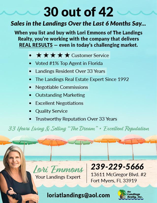 Disclaimer/Complaint Process: Happy Landings™ is a digital magazine published for the benefit of the residents of The Landings Yacht, Golf and Tennis Club, Inc., which has hired Seabreeze Communications as the publisher to provide content and sell advertising consistent with the editorial and advertising policies of the Board of Directors of The Landings Yacht, Golf and Tennis Club, Inc. The views and opinions expressed are those of the authors and, unless otherwise noted, should not be construed to be those of The Landings Yacht, Golf and Tennis Club Inc., or the Board of Directors, or the members. Paid advertising does not represent an endorsement by this publication. Content cannot be reproduced without written consent from The Landings Yacht, Golf and Tennis Club, Inc. Happy Landings is a registered trademark which cannot be used without the express written permission of the holder of the mark, The Landings Yacht, Golf and Tennis Club, Inc.