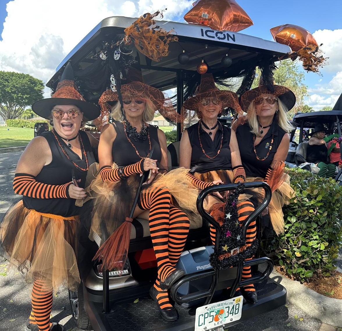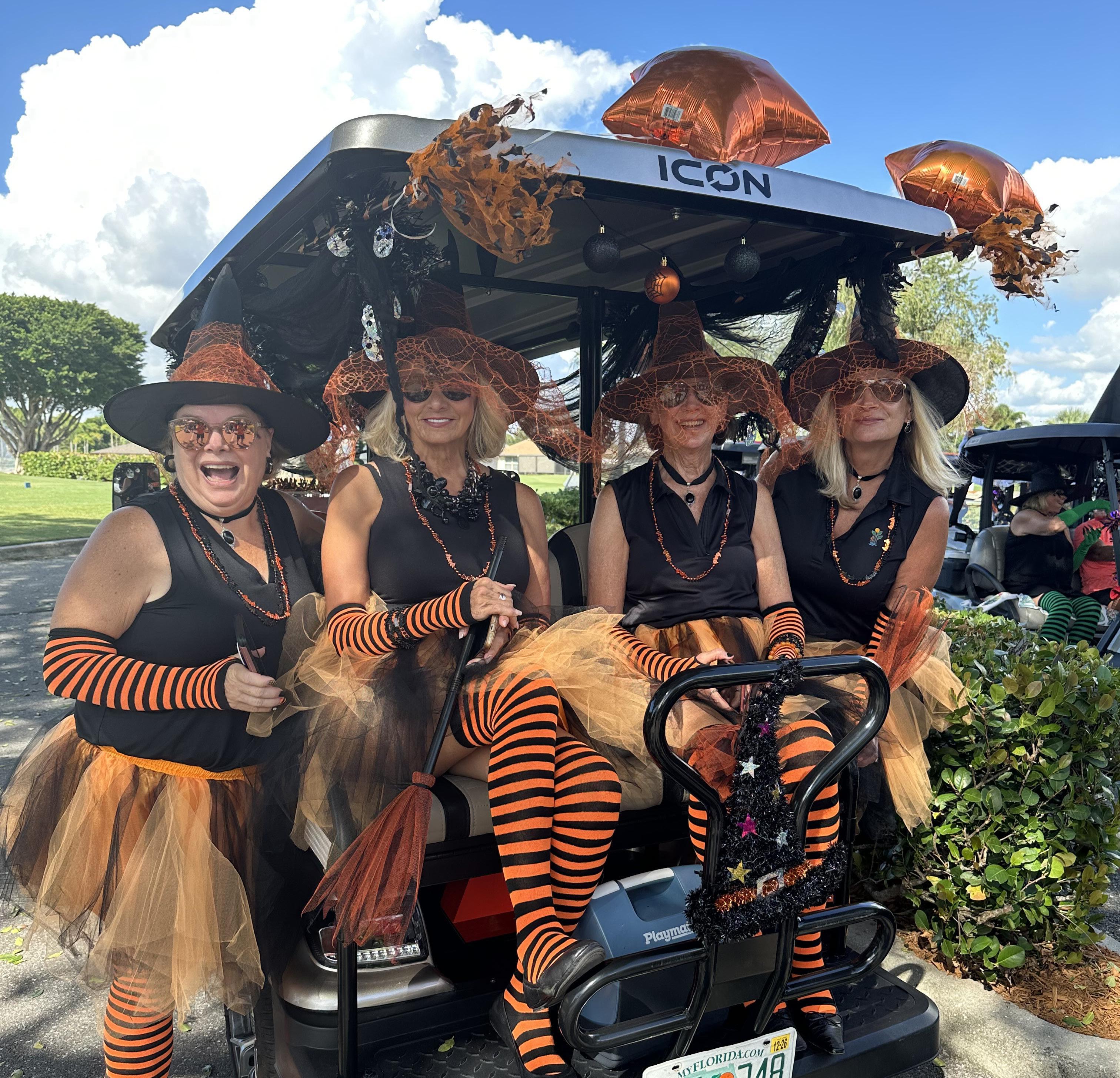 The Inaugural Witches Ride and Enchanted Ball turned into a very festive affair for all the participants. It began in the parking lot at the Helm Club with witches and warlocks riding in golf carts or on bicycles. There were walkers too. Cathy Steeves, Crystal Day, Sarah Noyes and Brenda Ramsey (from left) had reason to smile. They won the award for best decorated golf cart.
