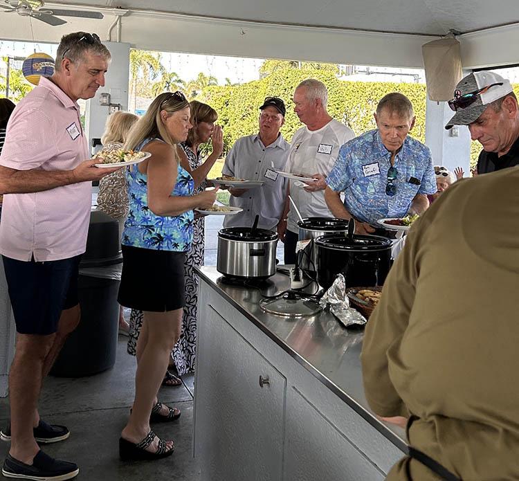 The Marsalas treated us to refreshing spiked apple cider as well. We had fantastic attendance of 72 residents, which included eight of our nine board members. Just another indication that our board is in total support of our village. This attendance was twenty over 2024 and we are looking forward to a larger crowd at our future events, especially as more snowbirds are returning. Come join the fun and show off your cooking skills as well.