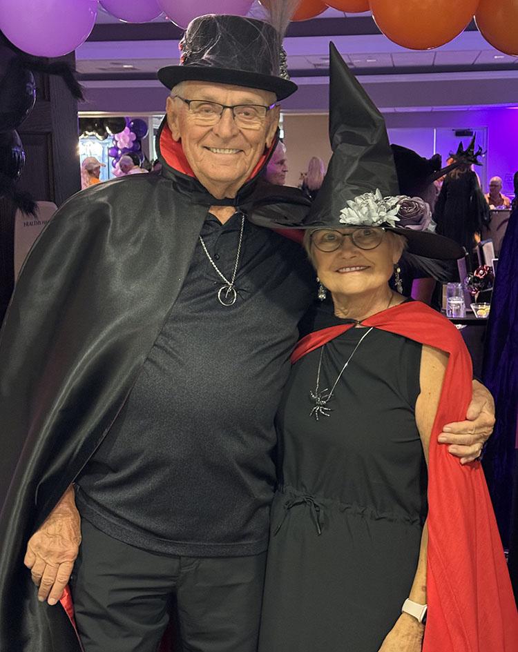 Carol Donohue in her white witch’s garb and her friend Randy attended the Enchanted Witches Ball.
