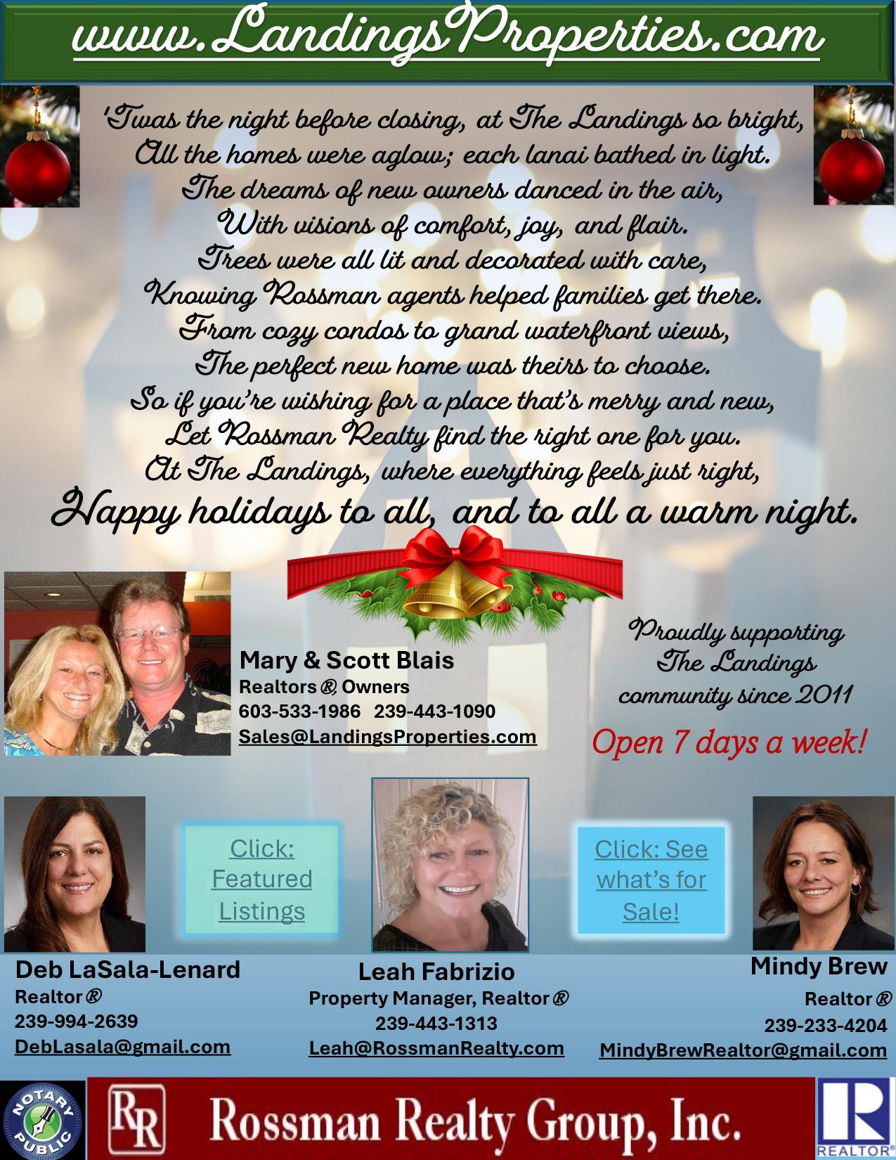 Greetings for the holiday months! The weeks seem to go fast. However, when one lives in a community such as The Landings time flies when you are having fun!