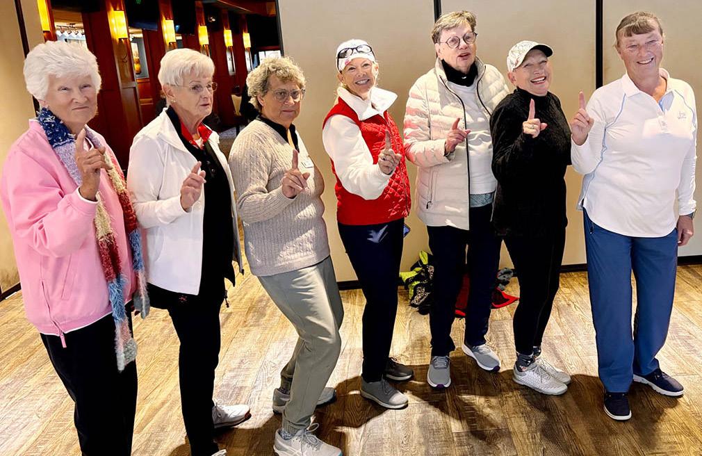 Winners of the President’s Cup event were (from left): Linda Schmidt, Karen Erickson, Betty Kollar, Joan Woodford, Joan Zerolis, Cookie Smith and Linda Sharron.