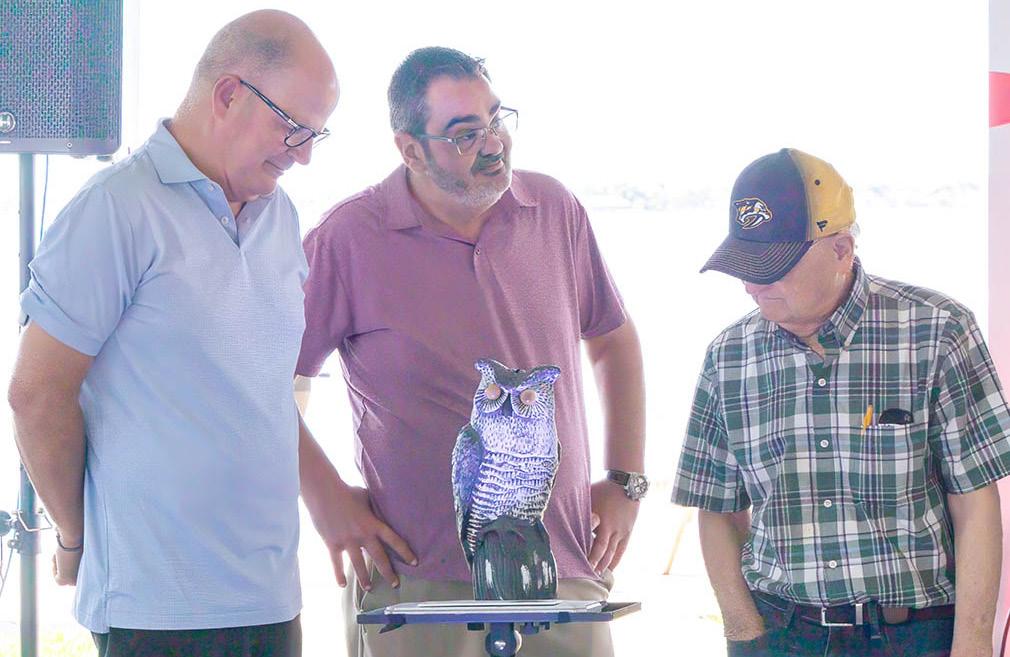 A group of us attend the dedication of Picnic Pointe to Charlie McCoy – now the Charlie McCoy Pavilion. Charlie sang for us the song he wrote after Hurricane Ian. He had walked down to Picnic Pointe and as he turned to return, he saw our protective owls used to keep away birds from leaving their calling card. They had survived! He wrote the song celebrating the resiliency of the birds and of The Landings. With the renovations, new birds were installed, and Charlie was presented with one of the original owls! What beautiful people, what beautiful music we have at The Landings. The Landings is where the wise, talented owls do land.
