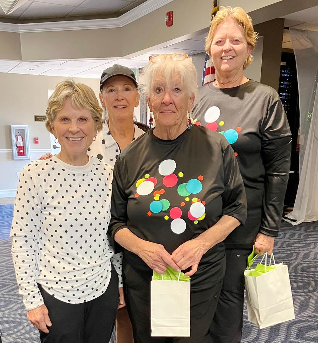 Our January “Member-Guest Day” was a Polka-Dot Classic with everyone encouraged to wear your favorite polka-dot attire. There were so many polka dots showing how creative everyone was in every color design and style. Along with the polka dot theme, we played “BINGO” golf. Each pair was given a bingo card that each square was designated to find a turtle, fish, get out of sand, hit a tree, hole in one, birdie, find a ball and the list went on. The most squares circled was 21 by the winning foursome of Sarah Noyes, Sue Copeland, Lynne Denk and Bev Reeves.