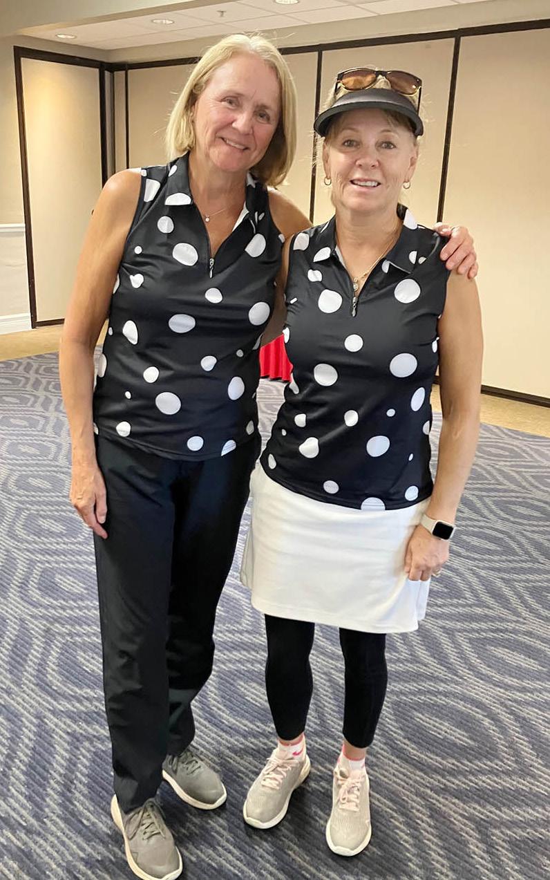 Low Net honors in the Shamble went to Christy Eyre (left) and Laura Trian.
