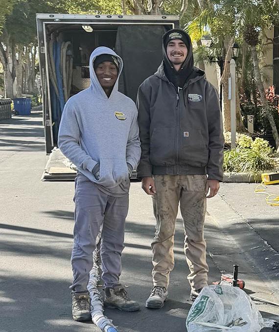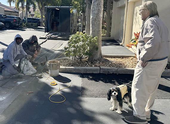 The Inman, Brooks, Wilson and Lorenz families at 4502 Windjammer suffered from the periodic flooding in front of their building causing access issues in that area, hence the reference to “Lake Lorenz.” It was determined that the concrete aprons between the driveways and the streets had sunk due to a lowering of the ground below. The Schooner Board decided the appropriate remediation of this situation was to raise the concrete aprons, also known as “slabjacking.”