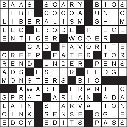 A political orientation 19. Leveling wedge 20. Fifth sign of the zodiac 21. Wear away 22. Fragment 23. Siren 25. Beau 27. Bounder 28. Best-loved 31. Move furtively