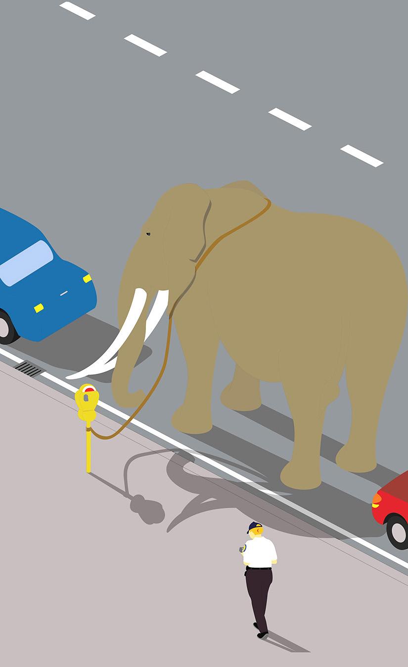 2. Tying an elephant to a parking meter requires paying the meter as if it were a car.