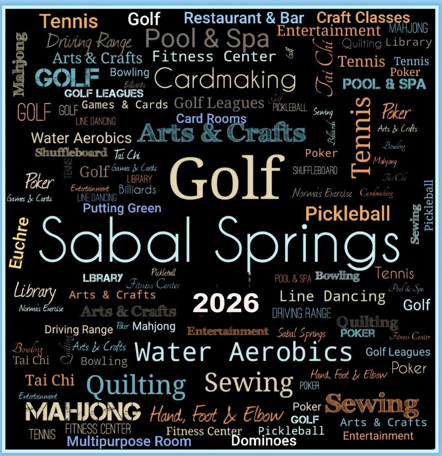 In Sabal Springs, there’s something for everyone. From golf and tennis to card making and arts & crafts, from Tai Chi and Aquacise to cards and Maj Jongg; from the updated library and monthly book club to comedy shows and live musical entertainment to corn hole and shuffleboard. From Sunday Funday to Bingo and little bit of everything in between. There are more activities offered than can fit on the calendar. Enjoy them all and everything Sabal Springs has to offer. Make new friends, learn a new skill, keep that body and mind sharp. Thanks to Susan Costa and other Sabal Springs’ residents for the photos used on this month’s cover.