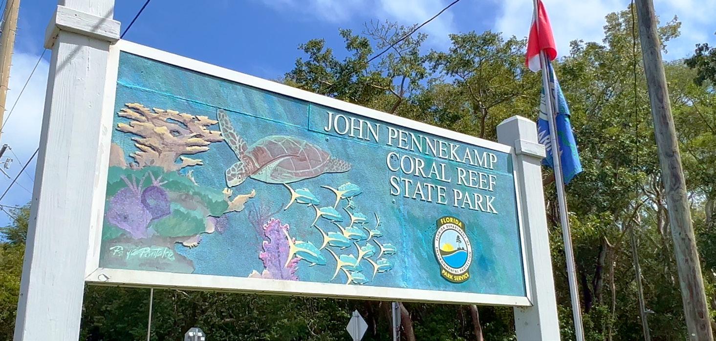 JOHN PENNEKAMP CORAL REEF STATE PARK INCLUDES AROUND 70 SQUARE NAUTICAL MILES OF ADJACENT ATLANTIC OCEAN WATERS. THE PARK IS ROUGHLY 25 MILES LONG AND EXTENDS THREE MILES INTO THE ATLANTIC OCEAN ALONG THE PROMINENT HAWK CHANNEL PASSAGE.