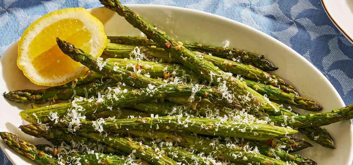 Preheat oven to 400°F. Toss asparagus with olive oil, garlic, lemon zest, salt, and pepper. Spread on a baking sheet in a single layer. Roast 12–15 minutes until tender-crisp. Finish with a squeeze of lemon juice and optional cheese.