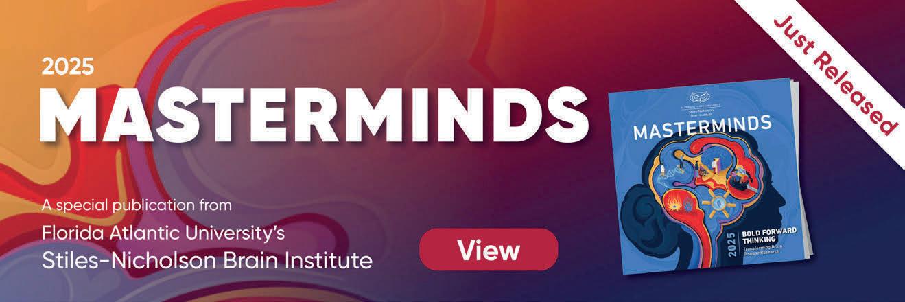 The evening featured a special reception and dinner for SNBI supporters and collaborators followed by a lecture from eminent Alzheimer’s disease researcher, Sir John Hardy, Ph.D., chair of Molecular Biology of Neurological Disease at University College London’s Institute of Neurology. During the dinner, guests heard from the center’s inaugural director, Corinne Lasmézas, DVM, Ph.D., about her vision to accelerate the work already underway at Florida Atlantic to develop bench-tobedside treatments for neurodegenerative diseases through multidisciplinary collaboration and cutting-edge technologies.