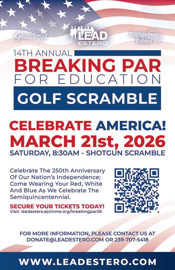 Individual tickets are $150 but gather a foursome of friends for only $500. Registrations can be made online by clicking on the QR code in the flyer on page 15 or by visiting LeadEstero.ejoinme.org/BreakingPar26 .