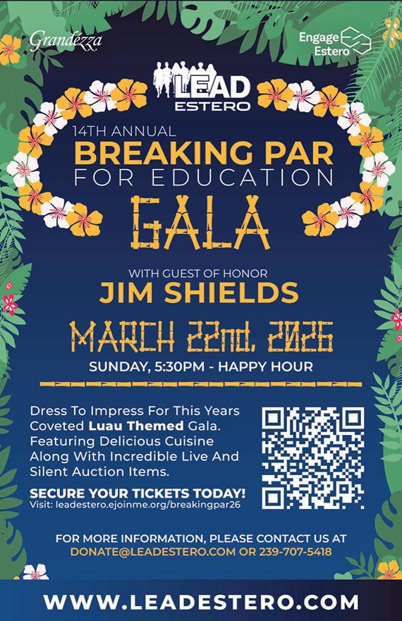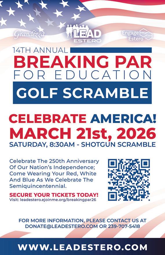 Individual tickets are $150 but gather a foursome of friends for only $500. Registrations can be made online by clicking on the QR code in the attached flyer or by visiting LeadEstero.ejoinme. org/BreakingPar26.