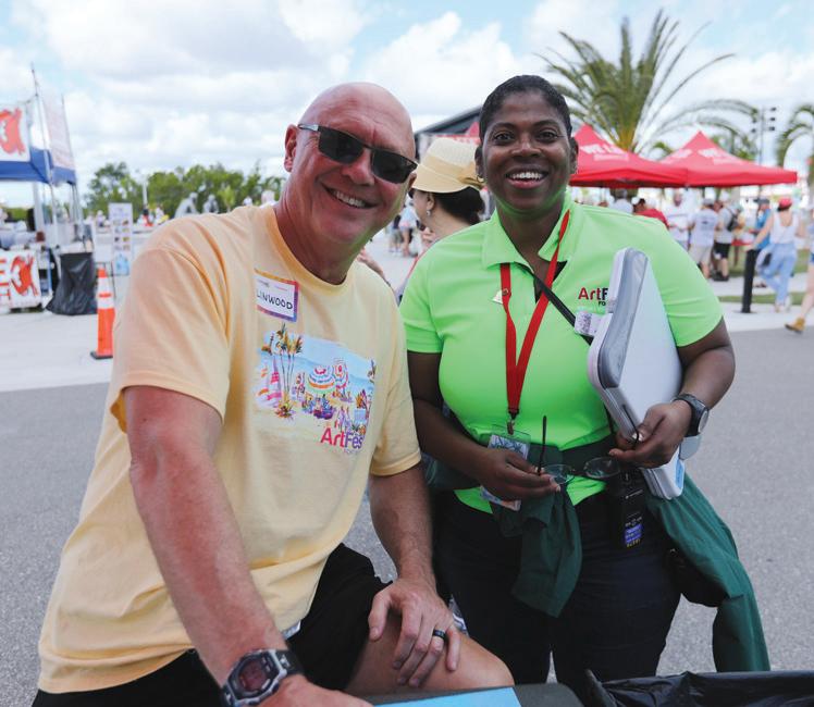 ArtFest Fort Myers welcomes volunteers from all walks of life, whether for the festival weekend or those seeking more sustained, year-round involvement. Weekend volunteers are required to commit to a minimum fourhour shift, with a choice of roles such as interacting with professional artists, vending commemorative shirts, posters, and other festival merchandise, assisting in the children’s Art Yard, staffing the VIP Club, contributing to the success of the Publix Run To The Arts 5K, or selecting from numerous other volunteer assignments.