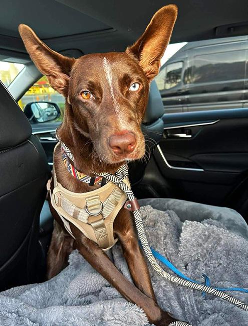 Sophia is an 11-year-old rescue from San Antonio. Her unique look warmed Erika’s and Brian’s hearts the moment they saw her. People would always ask “what kind of dog is she?” Her doggie DNA results labeled her a “mega mutt” which is a dog with such diverse genetic traits that she’s truly one of a kind.