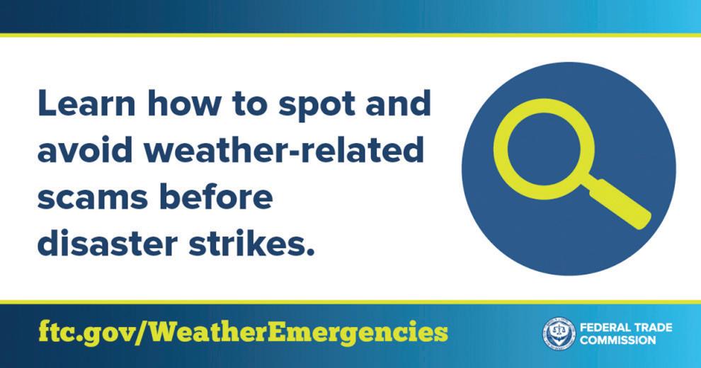 Weather forecasters are predicting an active hurricane season, but if you live in large parts of the country — including those hit by tornadoes over Memorial Day weekend — you’ve probably noticed more active storms of all types. To get started preparing for hurricane season or any storm, while avoiding scams, check ftc. gov/WeatherEmergencies for new information to help you spot, avoid and report scams as you prepare for, deal with and recover from extreme weather and natural disasters.