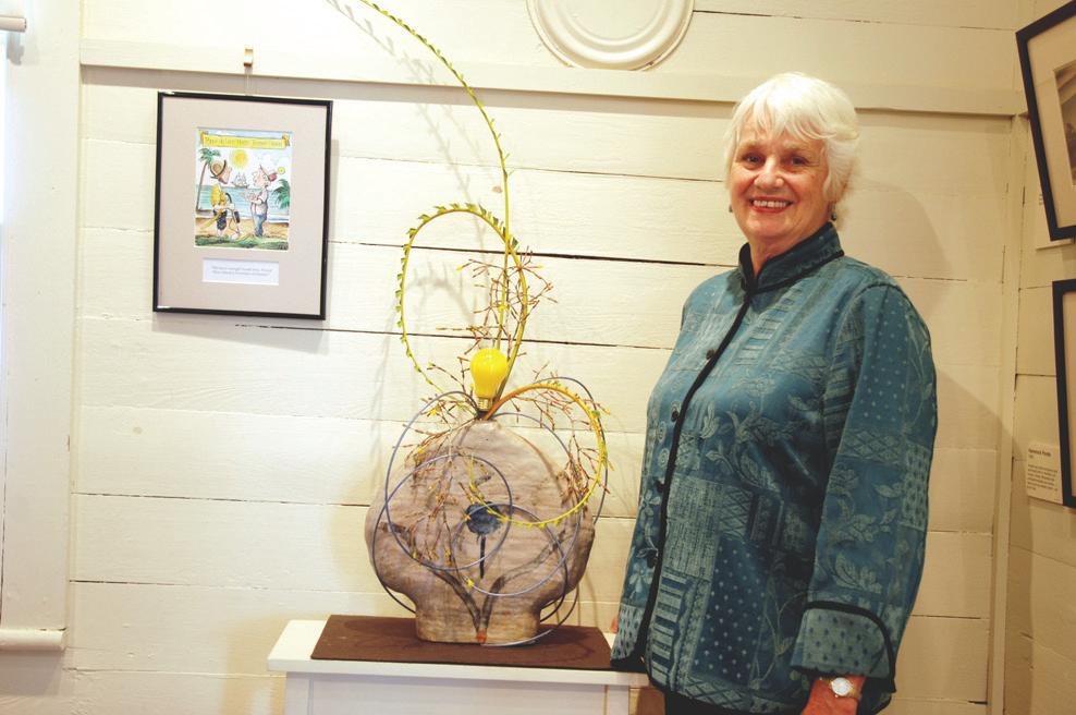 Winnie Stone with her floral design at an Art in Bloom event at Edison and Ford Winter Estates – floral designers created centerpieces that captured the essence of a paired painting.