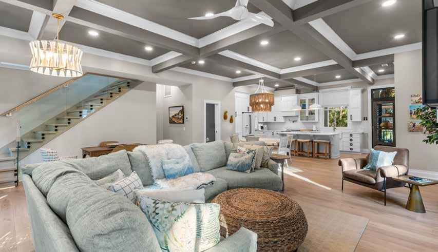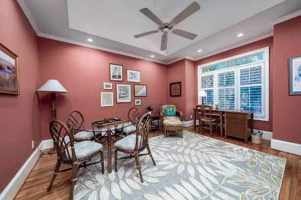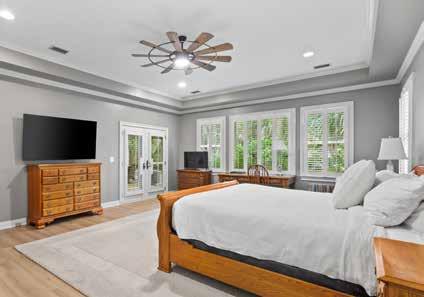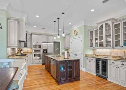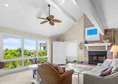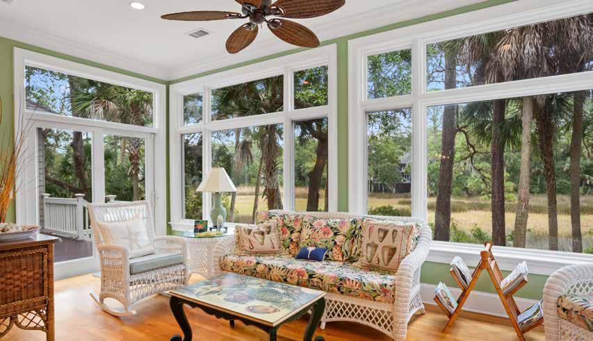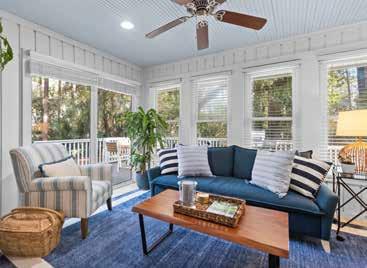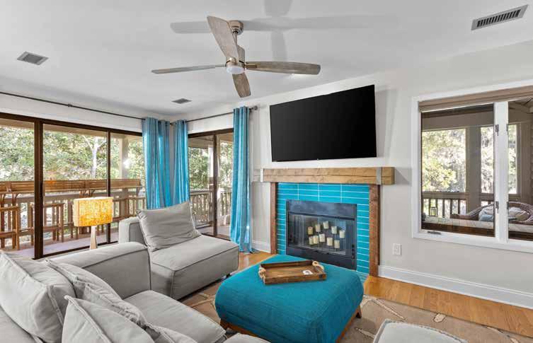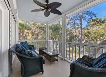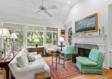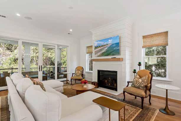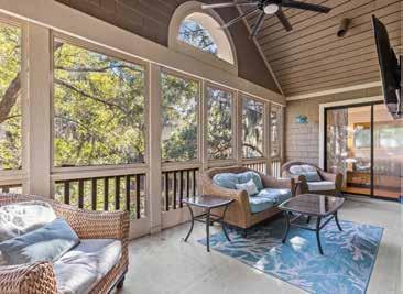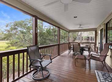 Nestled into the dunes along the 7th green of Ocean Winds Golf Course, this Stephen Mays–designed residence offers privacy, elegance, and effortless Lowcountry living. A natural border of palms frames the expansive screened porch and rear deck— an inviting outdoor retreat ideal for both relaxation and entertaining. Inside, the spacious floor plan centers around a chef’s kitchen with crisp white cabinetry, granite countertops, stainless steel appliances, a 5-burner Dacor gas cooktop, walk-in pantry, wet bar with wine cooler, and a large island perfect for gathering. The adjoining family room, featuring a tray ceiling and access to the screened porch, creates seamless indoor–outdoor flow. Formal dining and living rooms provide additional space for hosting in style. The generous primary suite includes a sitting area, tray ceiling, private porch access, and two walkin closets. Its spa-like bath features a jetted soaking tub, walk-in shower, dual vanities, and private water closet. Three guest bedrooms, each with en suite baths, offer comfort and privacy, while a dedicated study makes an ideal home office or reading room. Additional highlights include hardwood floors, crown molding, recessed lighting, a double-sided fireplace, and a wellequipped laundry room with sink and cabinetry. Sold furnished (with exclusions) and currently on a rental program, this thoughtfully designed home blends comfort, functionality, and timeless architectural detail—all within the peaceful setting of Seabrook Island.