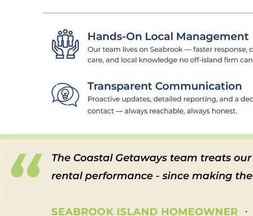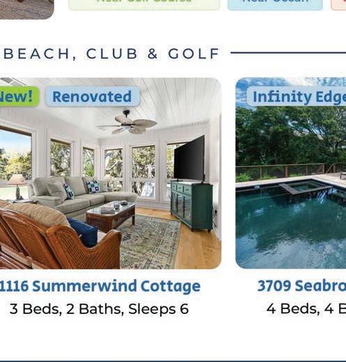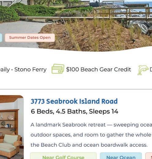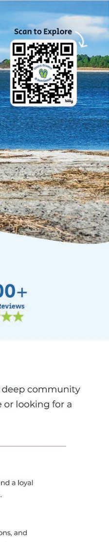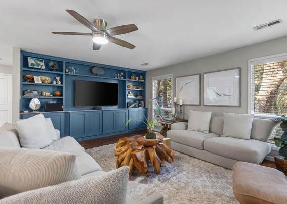 Set against the backdrop of ever-changing tidal marshes, this standalone villa offers the perfect retreat to enjoy Seabrook Island’s natural beauty and laid-back lifestyle. The updated floor plan includes 2 bedrooms, 2.5 bathrooms, a loft, and a bonus room off the primary suite—ideal for guests, a home office, or hobbies. The open-concept great room and kitchen feature vaulted ceilings and abundant natural light, with sliding doors leading to an expansive screened porch overlooking the marsh. Two decks and a covered patio below provide multiple outdoor spaces for relaxing or entertaining. Whether you’re enjoying quiet mornings or sunset views, this villa blends comfort, charm, and flexibility in an unbeatable island setting. seabrookisland.com |
