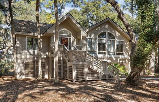 Welcome to your perfect coastal retreat, ideally located within walking distance to the beach, Island House, golf, dining, and pools. This light-filled home features an open-concept layout, luxury vinyl plank flooring, and distinctive beamed ceilings. The updated kitchen offers leathered marble countertops, a matching backsplash, stainless appliances, and custom cabinetry. Indoor and outdoor dining spaces make entertaining easy. The lower level includes a laundry area and flexible space for a home office. Designed to withstand hurricane-force winds and coastal flooding, this elevated home features steel beam construction for added durability. Sold furnished (with exclusions) and generating strong rental income, it’s an ideal personal getaway or investment opportunity on Seabrook Island.