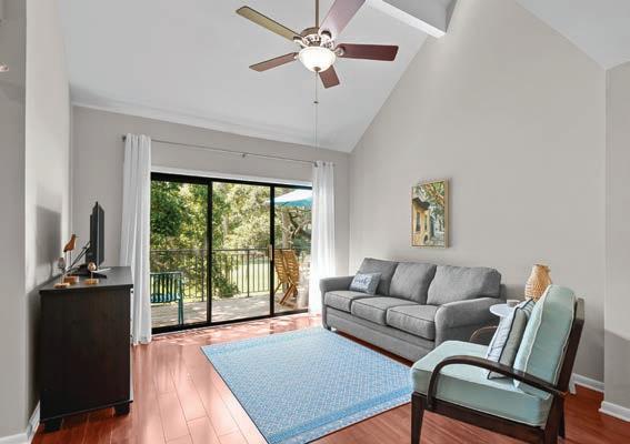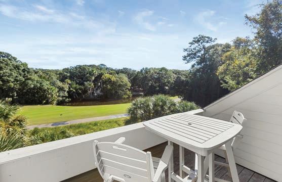 An exceptional opportunity to own a fully furnished top-floor villa on Seabrook Island. This charming two-bedroom, 1.5-bath home is ideal as a primary residence, vacation getaway, or rental investment, offering true Lowcountry living just a short walk from premier island amenities. The open floor plan features soaring vaulted ceilings, abundant natural light, and a bright, airy feel perfect for relaxing or entertaining. Living spaces flow seamlessly for comfort and functionality. Step onto the private back porch to enjoy peaceful views of the 9th hole of Ocean Winds Golf Course, framed by majestic live oaks and beautifully landscaped grounds—an inviting retreat after a day at the beach or on the course.